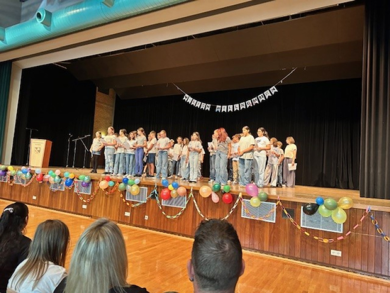 Anschließend zog die gesamte Festgesellschaft in die Stromberghalle, wo die offizielle Begrüßungszeremonie stattfand. Unsere Sechser eröffneten diese mit einem gemeinsamen Lied und einer begeisternden Darbietung des Schultanzes. Zwei Schülerinnen aus der Jahrgangsstufe 6 sprachen zu den neuen Fünfern, erzählten von ihren eigenen Erfahrungen im letzten Schuljahr und machten spürbar Lust auf dieses neue Kapitel an unserer Schule.